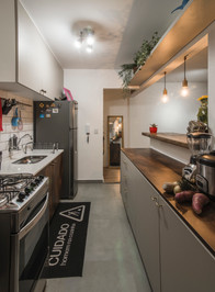 Não havendo a necessidade de pequenos ambientes como estava a planta original, decidimos pela demolição de praticamente 80% das alvenarias, deixando o apto amplo e conectado, proporcionando maior ventilação e iluminação como também mais flexibilidade de uso.