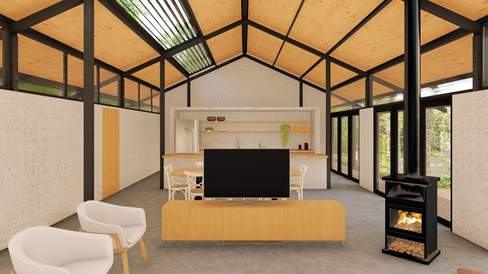 Todo o projeto foi elaborado com materiais e revestimentos rústicos, que a mão de obra local pudesse executar com facilidade – cimento queimado no piso, reboco nas paredes, e telhas metálicas – otimizando a obra e facilitando a logística.