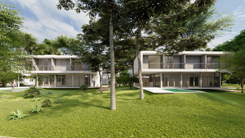 O projeto contempla duas tipologias de casas sobradas, ambas com 4 suítes, porém com arquitetura diferenciadas. Desta forma na implantação do terreno, foi pensado além das mesclas das opções, suas diferentes rotações, buscando sempre maior aproveitamento do sol e ventos da região.